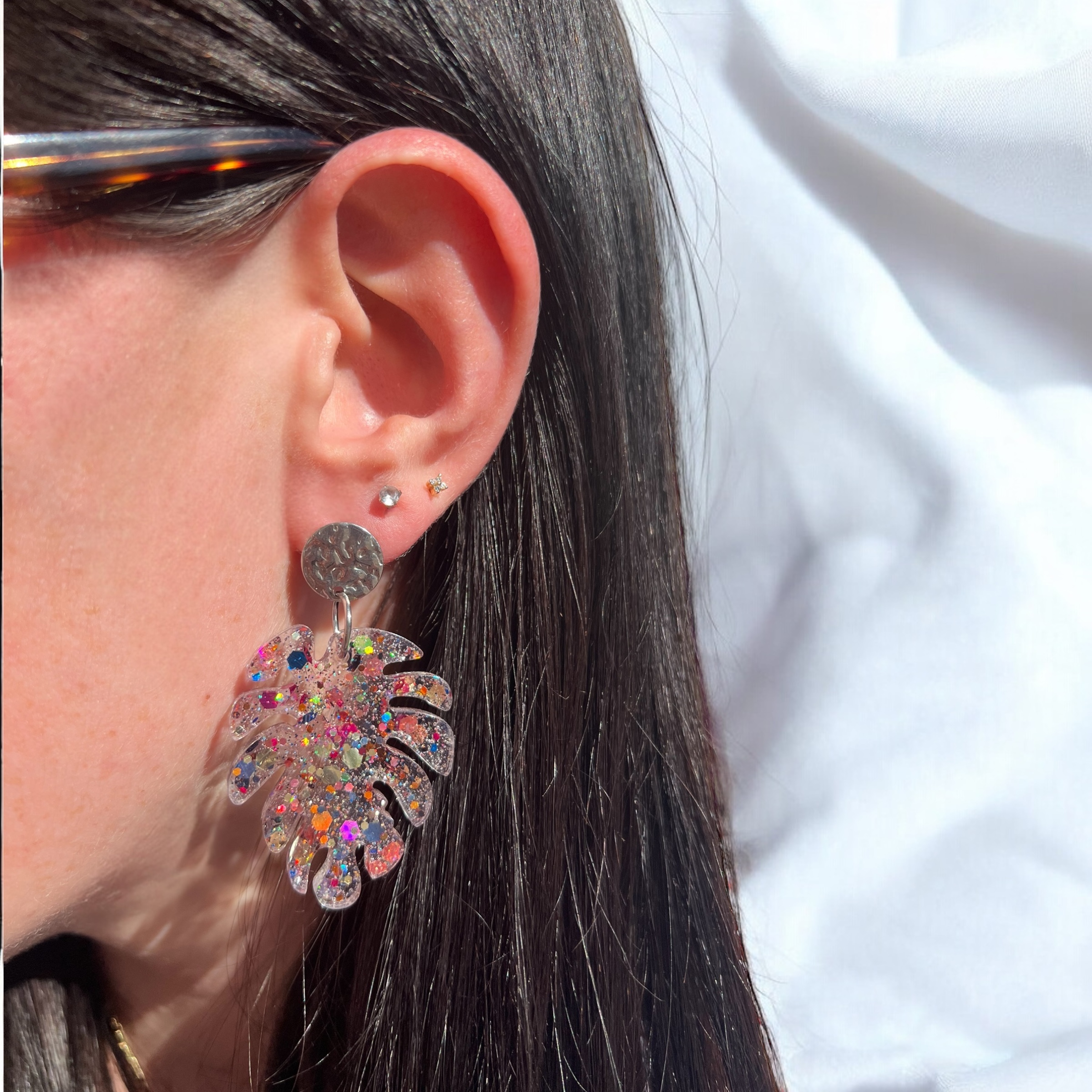Boucles d’oreilles en résine pailletée & acier inoxydable doré