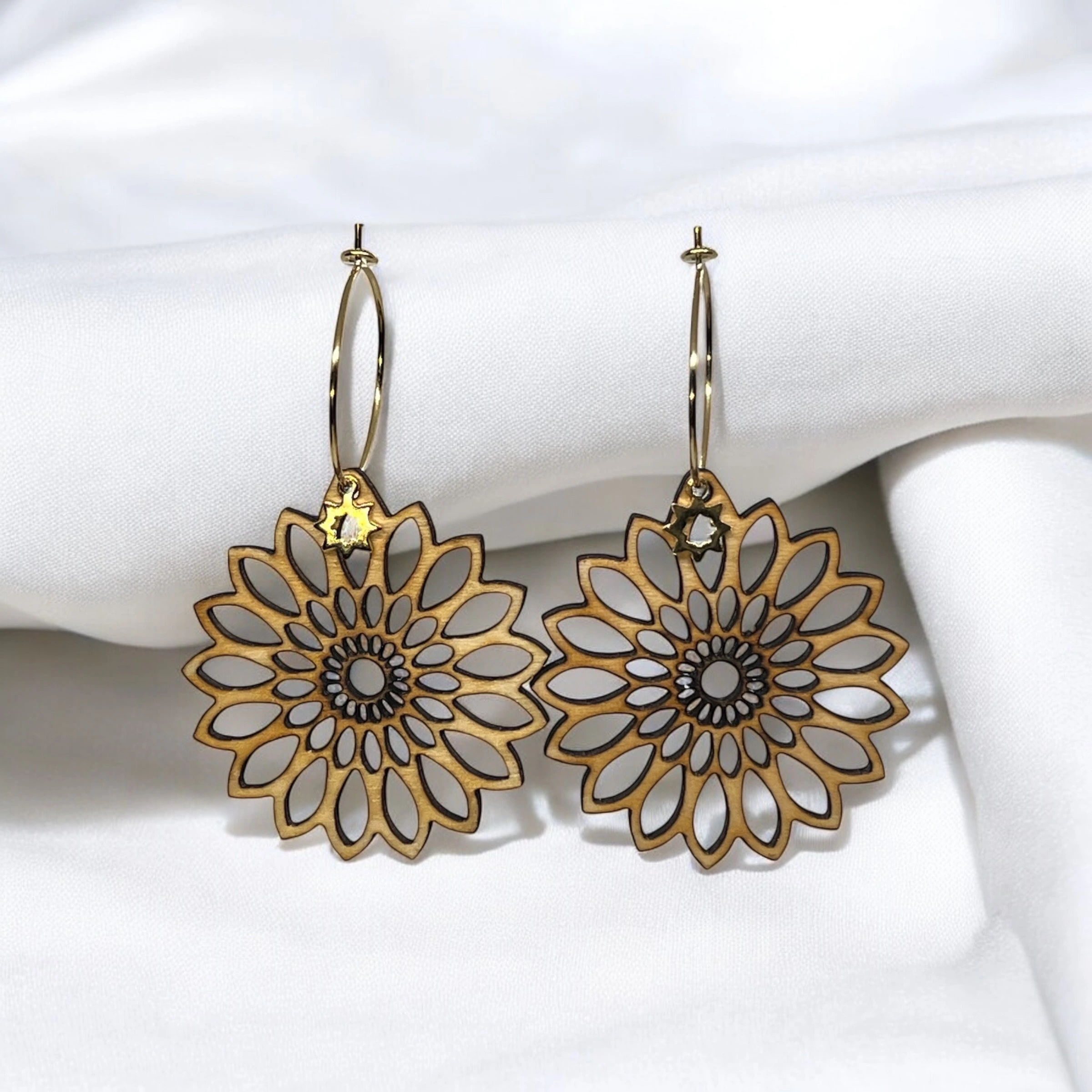 Des créations légères, naturelles et pleines de charme. Nos boucles d’oreilles sont entièrement fabriquées à la main à partir de bois et d’acier inoxydable, pour allier élégance, originalité et durabilité. Chaque paire est pensée comme une pièce unique, au design délicat et intemporel.